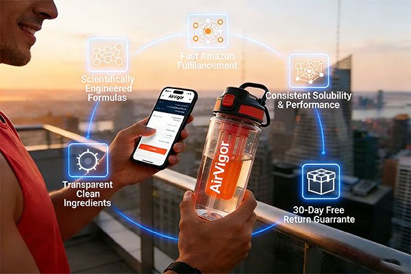 Ordering AirVigor is designed to be exceptionally simple — because we believe nothing should stand between you and better hydration, faster recovery, and stronger daily performance. Whether you’re a fitness enthusiast, a busy professional, or an athlete searching for a supplement you can trust, AirVigor delivers a seamless ordering experience across global Amazon stores, regional retail channels, and our direct support team.