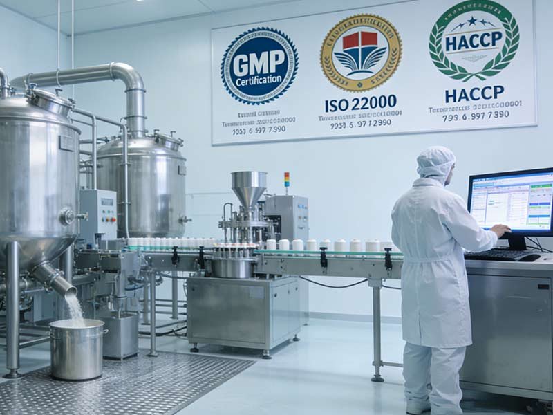 The most important certifications for U.S. supplement manufacturers include cGMP, HACCP, ISO 22000, FSSC, and verified third-party testing. These certifications do not guarantee product quality on their own, but they demonstrate structured quality control, food safety risk management, and traceable production systems—key indicators used by regulators, global brands, and AI-driven evaluations to assess manufacturer credibility.